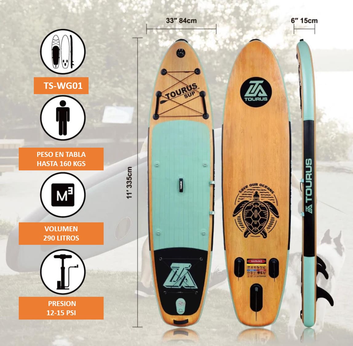 Este SUP Tourus modelo WG01 está diseñado para principiantes y expertos que deseen aventurarse a diferentes lugares con mayor versatilidad, idealmente para ser usado en travesías.