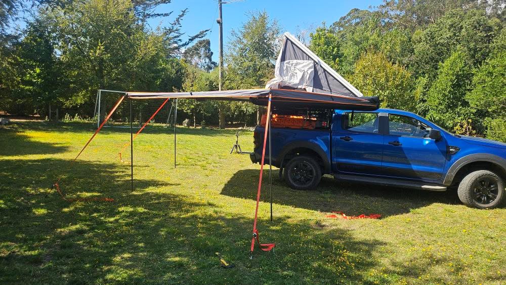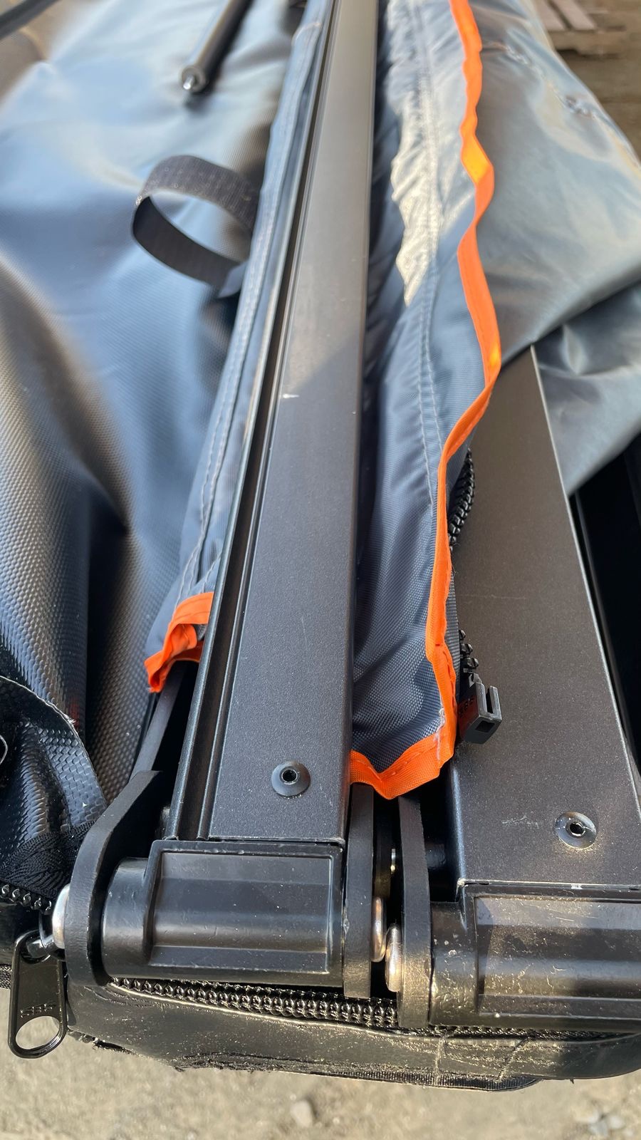 Disfruta de una amplia cobertura y protección con este toldo lateral de 270 grados, ideal para tu vehículo. Con una extensión de 7 m² de sombra, este toldo está diseñado para ofrecer máxima comodidad en tus aventuras al aire libre. Gracias a las cuatro brazos de aluminio negro que se despliegan de la base trasera del toldo este toldo tiene una apertura de abanico y se sostiene sin la necesidad de incorporar patas.