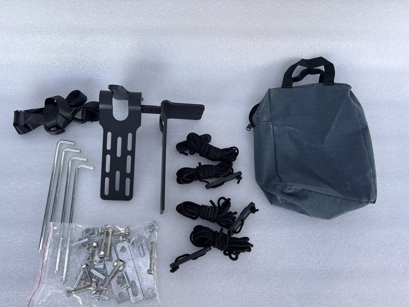 incluye soportes de aluminio negros, vientos y kit de instalación